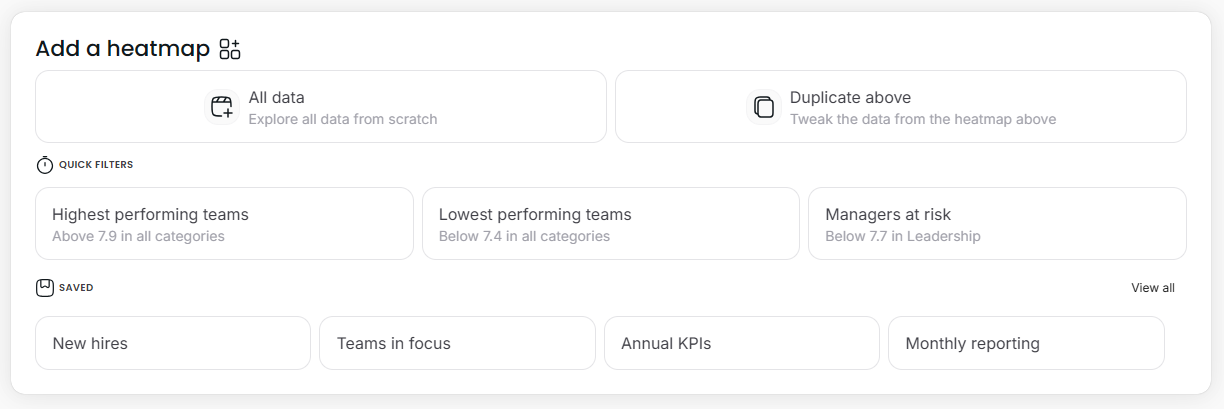 You can save up to 20 custom heatmaps, making it easy to return to the exact view and filters you need. This saves time whenever you want to recheck the same data.