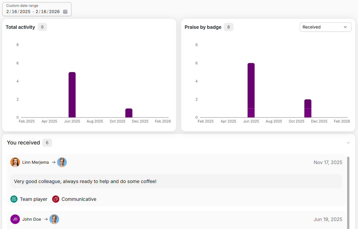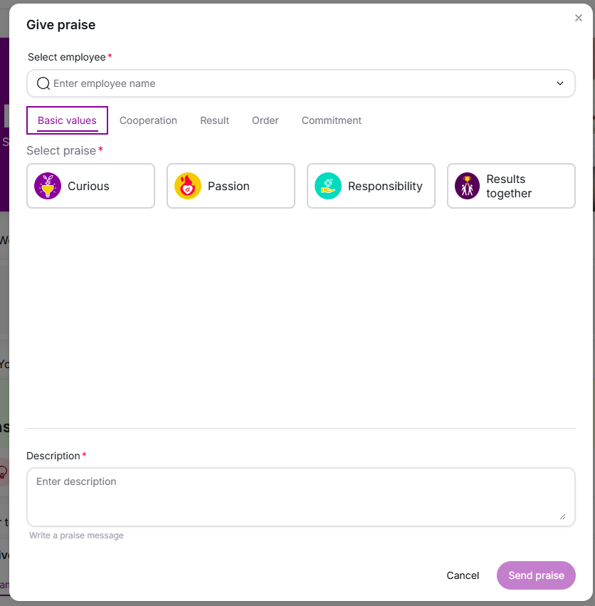 With the Praise feature, you can send positive vibes to your colleagues and boost team spirit. Read more: What is Praise?
