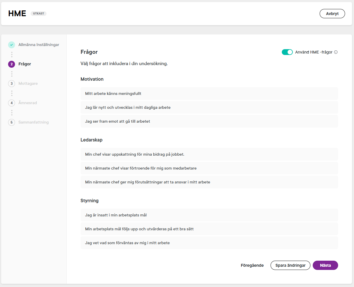 - Slå på Använd HME‑frågor.